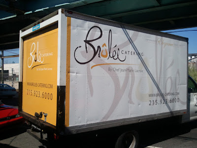By fully wrapping their vehicles, Brulee Catering was able to achieve the ghosted logo effect which adds lots of visual interest to the design. The bright pop of color on the back brings the whole look together and makes for a great looking wrap!